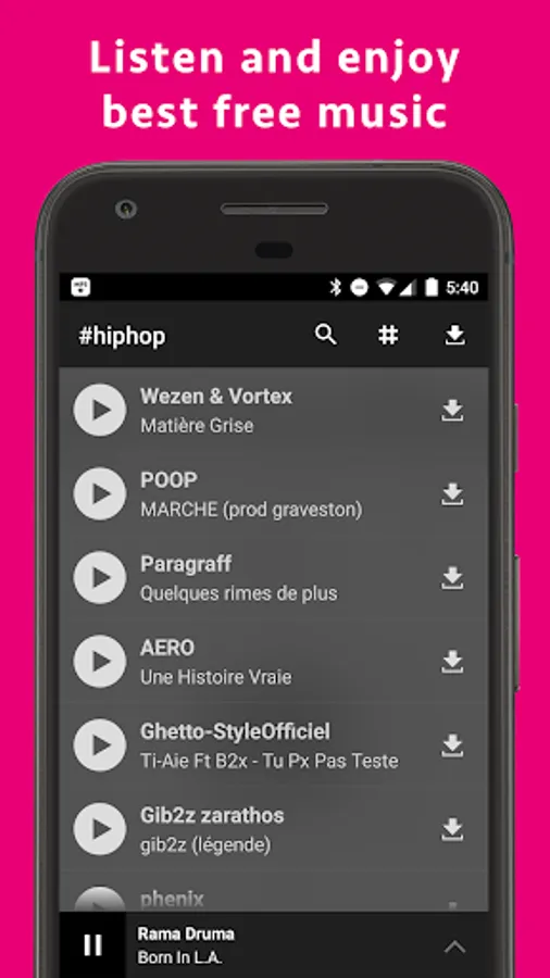 Discover new music and download MP3 music for free with MP3 Music Download Hunter app.