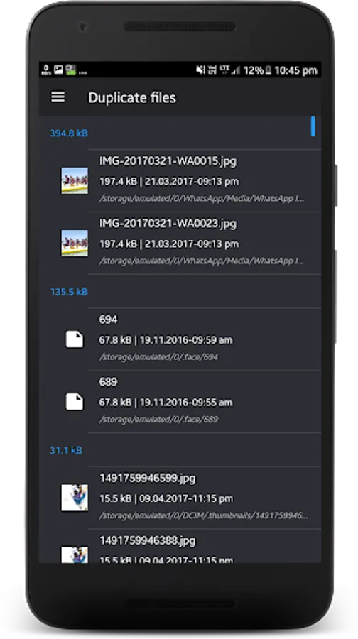 • Find duplicate files occupied in your phone and delete unnecessary files.