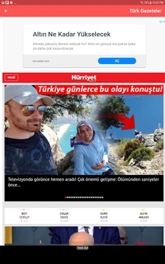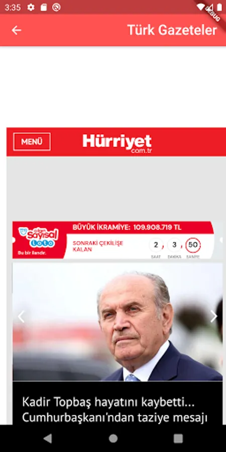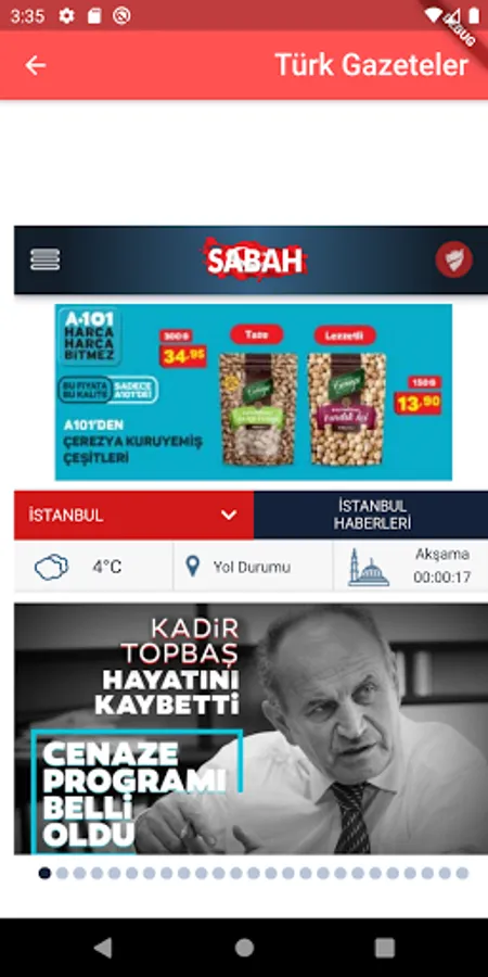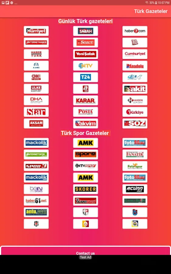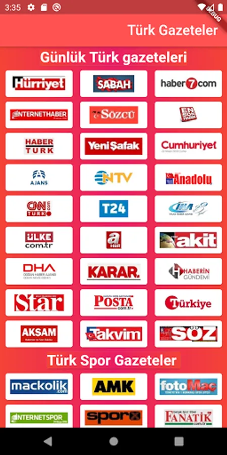 an application that includes different Turkish newspapers