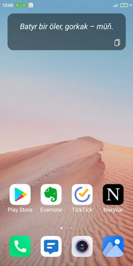 Türkmen halk nakyllaryny bir programma görnüşinde telefonda ulanmak isleýänlere 3 000 töwrek nakyly bir ýere jemlenen. Widget arkaly täze nakyllary göni ekrandan okap hem dost-ýarlaryňyz bilen paýlaşyp bilersiňiz.