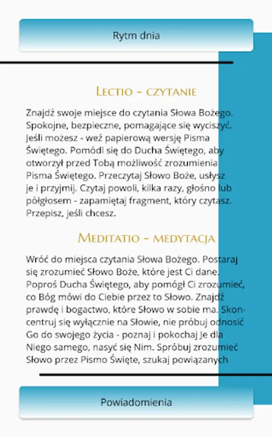 The application introduces to the rhythm of the day reading the Word of God related to Miriam