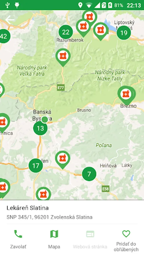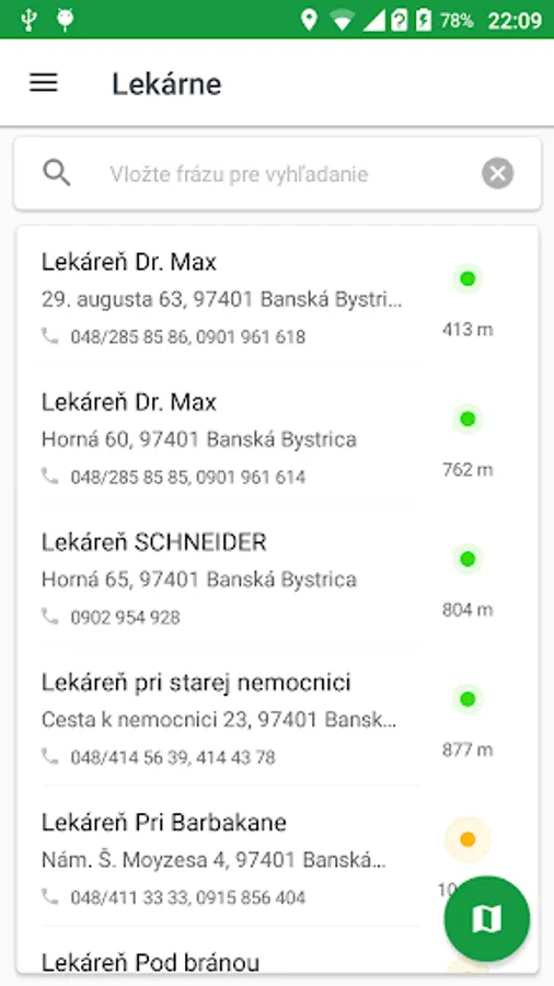 • pharmacy, emergency room, optics, ADOS - name, address, contact information, hours of operation, navigation, map
