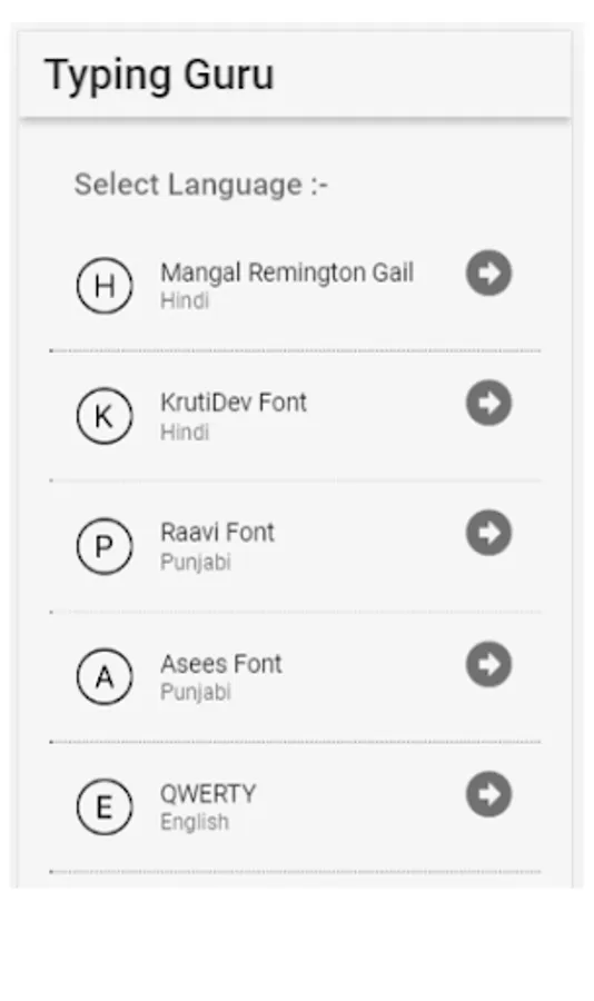 Learn Touch Typing for improving Speed and Accuracy. Prepare for Typing Test with Paragraphs. Learn Typing with Characters, Words and Paragraphs Variations. Supports Hindi Mangal Remington Gail, KrutiDev, Punjabi Raavi, Asees & English. Keyboard highlighting shows correct finger placement. Calculates net and gross words per minute WPM. This App is designed to help beginners to learn typing easily. Typing Tutor Application currently supports 3 languages Hindi, Punjabi & English. Each language has three sub options.