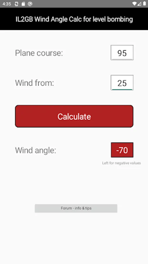 Very simple app to calculate the angle of the wind incident on the aircraft, in the level bombing missions of the IL2 Sturmovik Great Battles game.