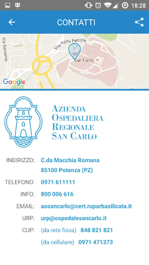 The application Hospital San Carlo di Potenza is an initiative created in order to allow for real-time use of the services made available by users. In the national healthcare landscape of the hospital San Carlo, it is a landmark for both residents of the Basilicata region and for citizens from other regions.