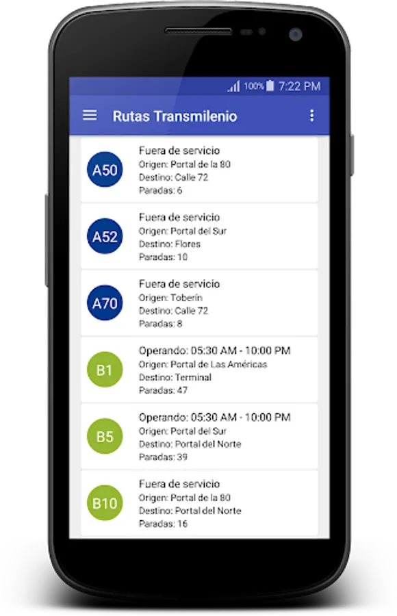 Note 2: This application has no relationship with the entity Transmilenio, it is developed by a system user.