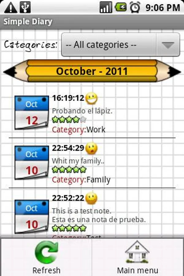 * Note list filtered by category and month(Press the pen tip to change the month).