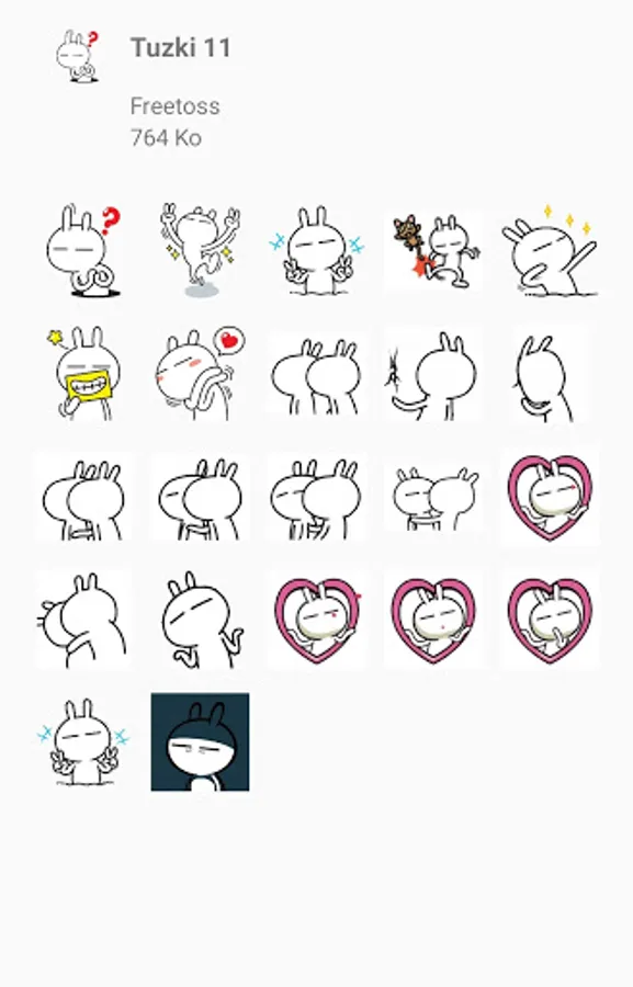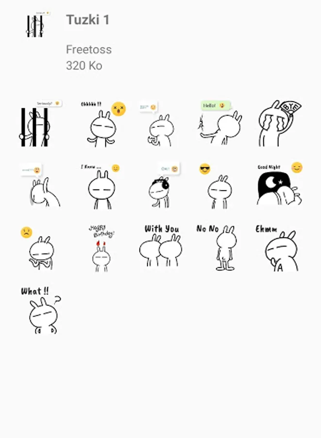 If you have any features or improvements suggested, please leave a comment on the WAStickerApps Tuzki Stickers For WhatsApp app. If something is not working properly, please let me know. When posting a low rating, please describe what is wrong with the possibility of solving this problem.