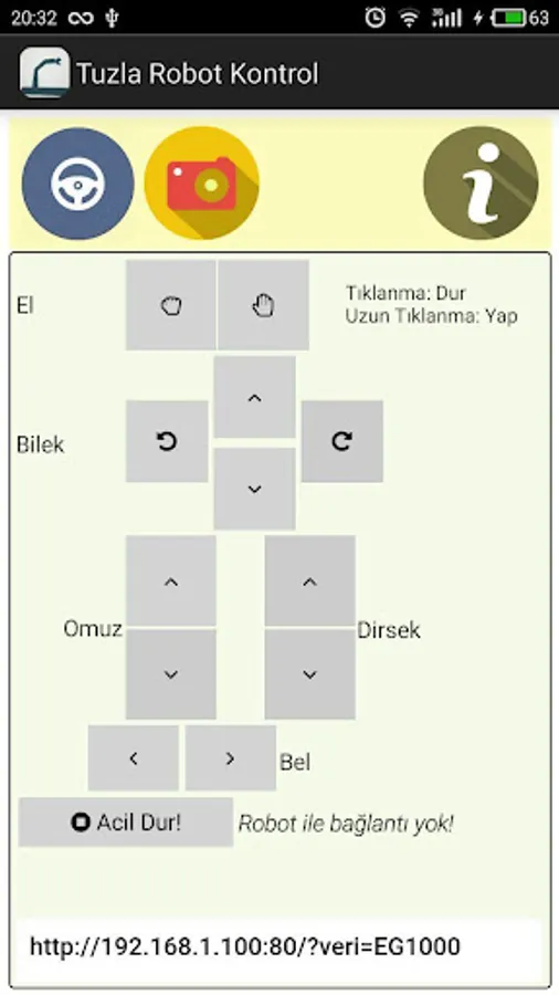 IP values are entered by pressing the Info button. Command is sent by pressing the stop button or operation is performed.