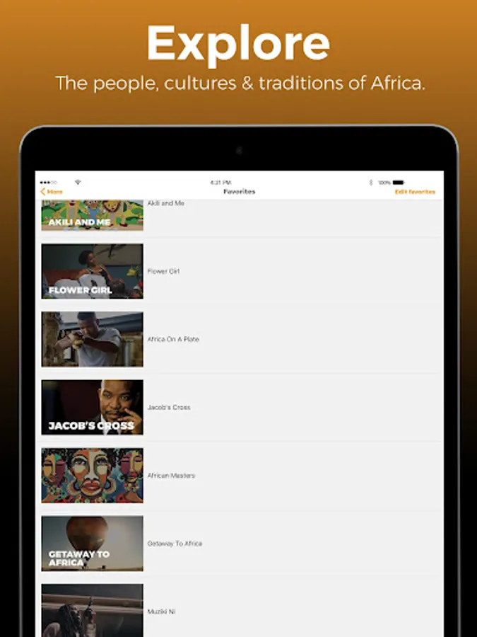 Explore the culture, people, places, and traditions of Africa and stream with IMPACT. Now streaming over 1,000 hours, with content added monthly. 60% of your monthly subscription goes to the featured creators and distributors on Demand Africa.