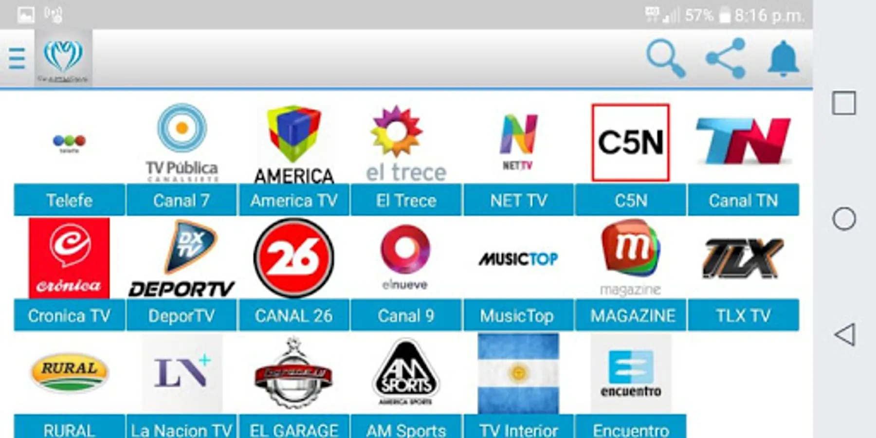 Here you can see from the most important channels and all the channels of the interior of the Argentine Republic on your cell phone totally free from anywhere in the world.