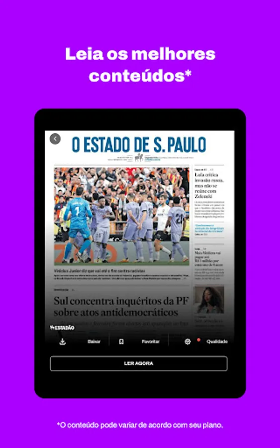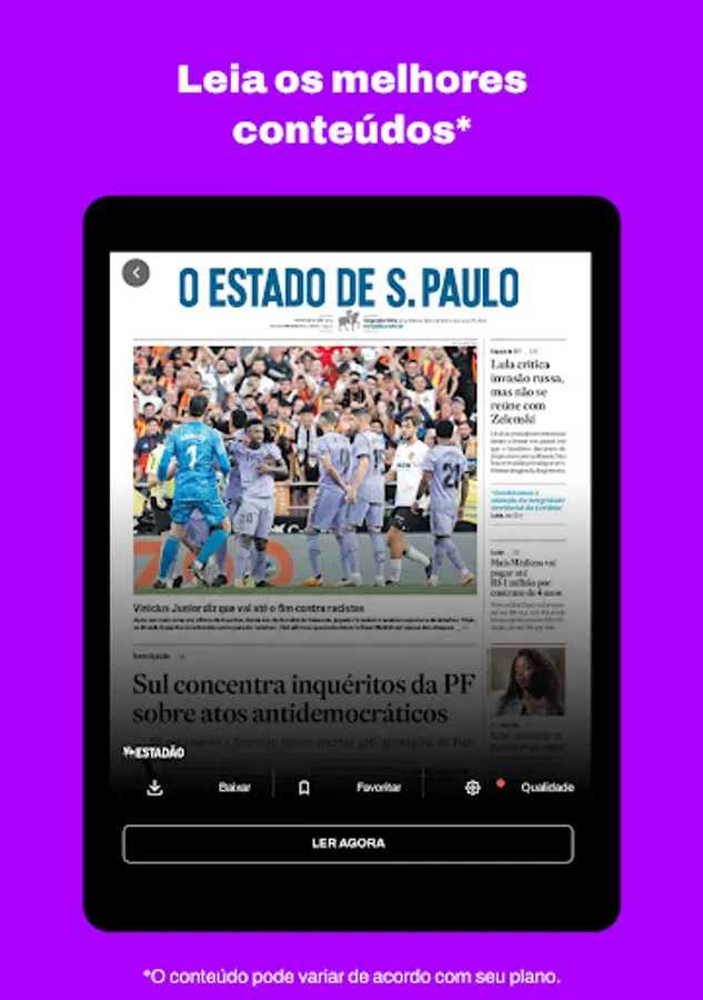 If you are a Vivo customer, you can access hube.jornais services directly from your cell phone. Read daily and in digital format the newspapers from Correio do Povo, Estadão, Estado de Minas, Folha de S. Paulo, O Dia, O Povo, and even Lance's feed! and New York Times. The service is an exclusive benefit for Vivo customers.