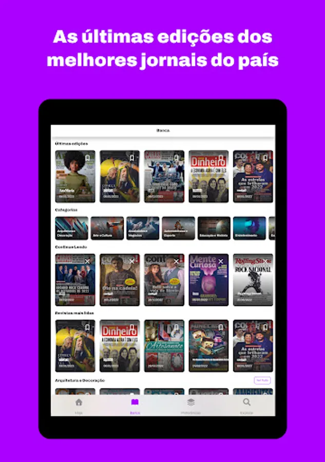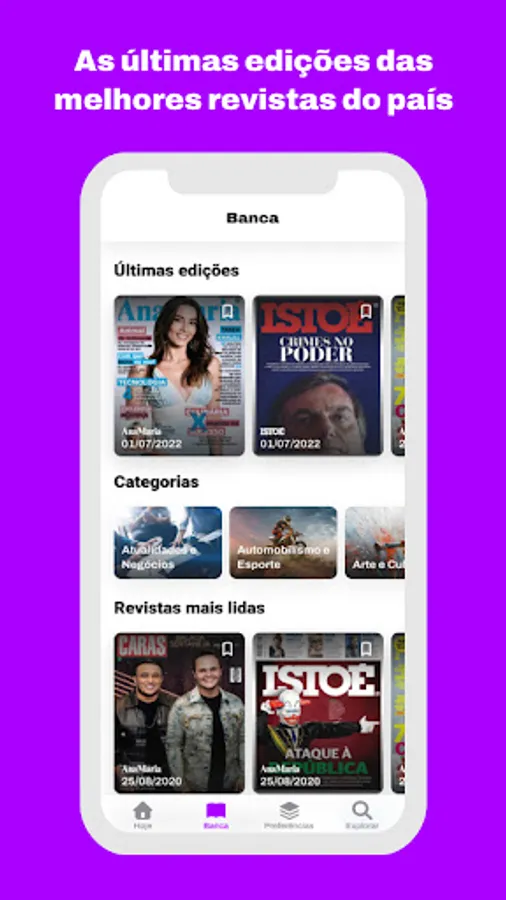 At hube.revistas you have unlimited access to more than 200 titles from publishers Astral, Caras, Edicase, Europa, Online and Qual. On a single platform, you will have access to the magazines Viaje Mais, Mundo dos Super-Heroes, Venda Mais, Contigo, Ana Maria, Guia da TV, Caras and much more.