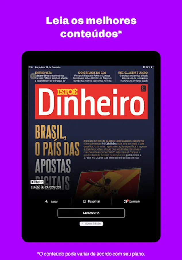 If you are a Vivo customer, you can access hube.revistas services directly from your cell phone. Read daily and in digital format. The service is an exclusive benefit for Vivo customers.