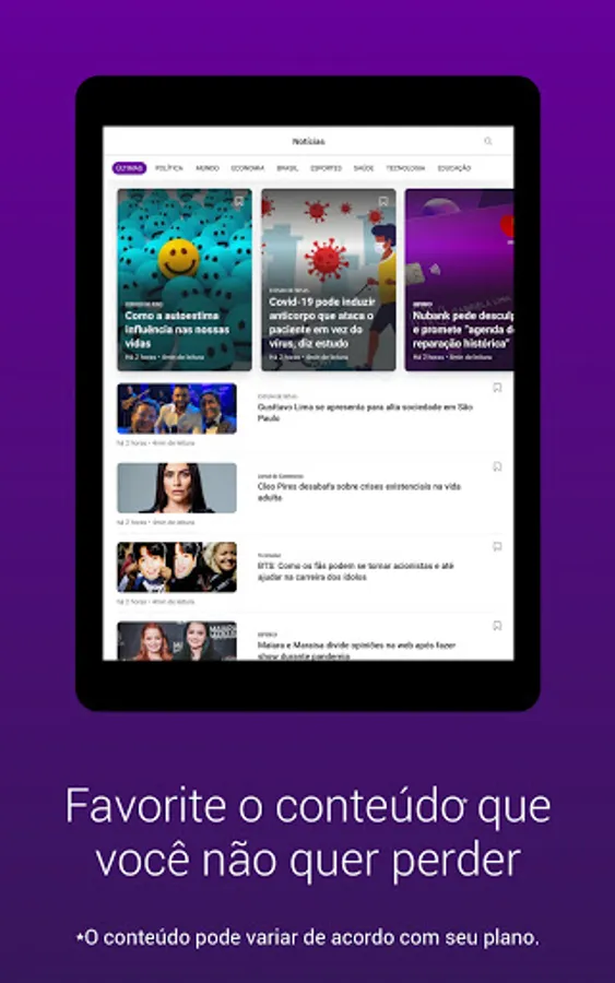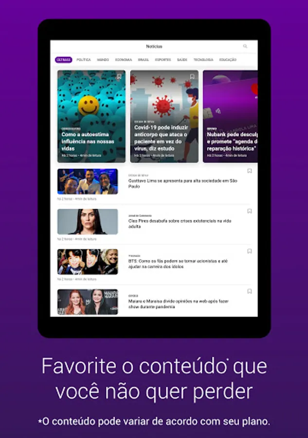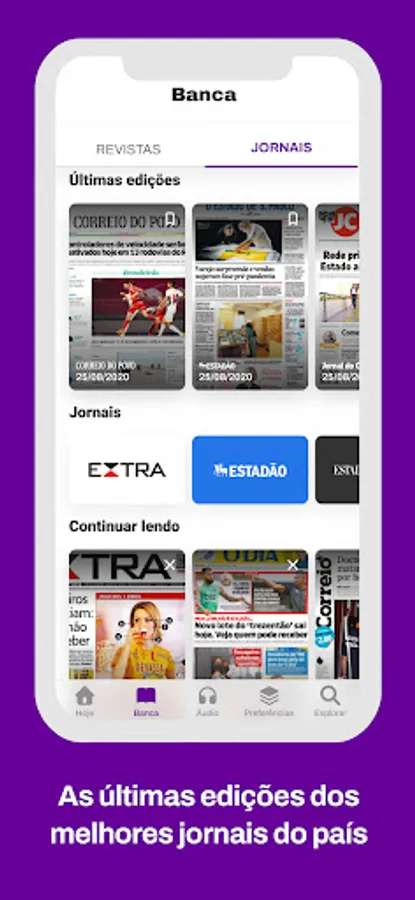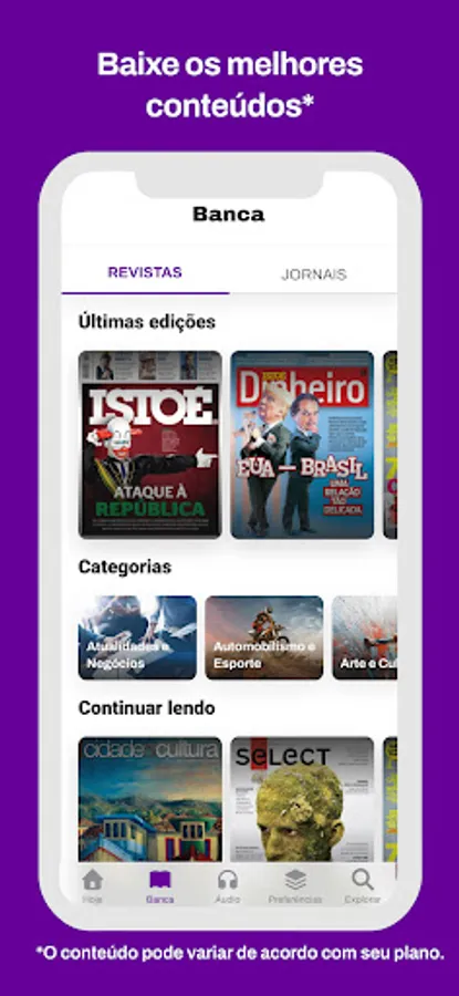 Unlimited access — Access the full editions of Época Negócios, Autoesporte, Vogue, Guia Informática, Viaje Mais magazines, newspapers and feed from O Povo, Estado de Minas, Correio do Povo, Estadão, Folha de S. Paulo and even the news of the Throw!