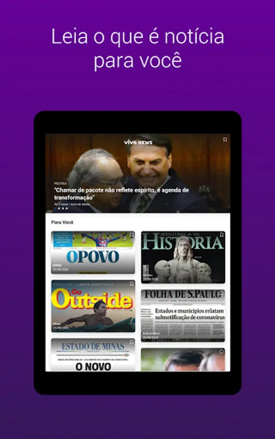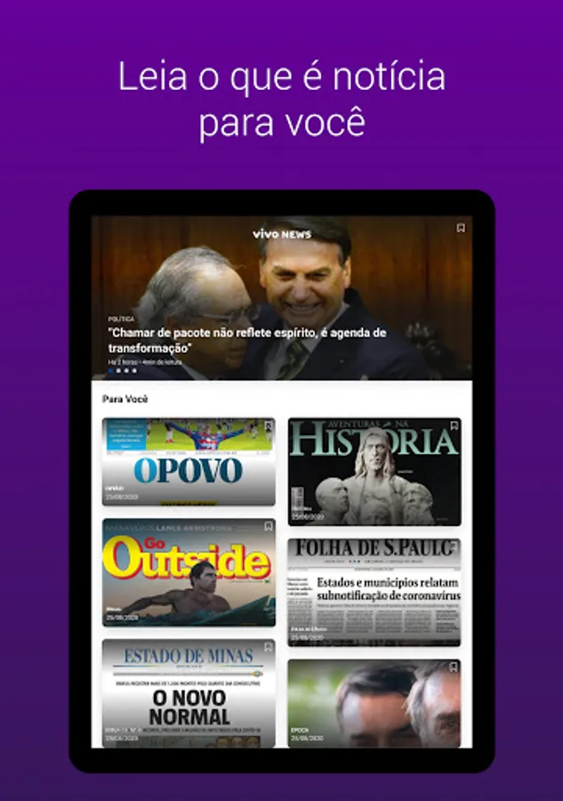 Vivo News has something new for you! How about having a more dynamic reading experience? Discover the Vivo News app, a digital content application, which brings together more than 80 magazines and newspapers in full. Now it's easy to follow everything that happens in Brazil and in the world and stay up to date with the main issues of the moment.