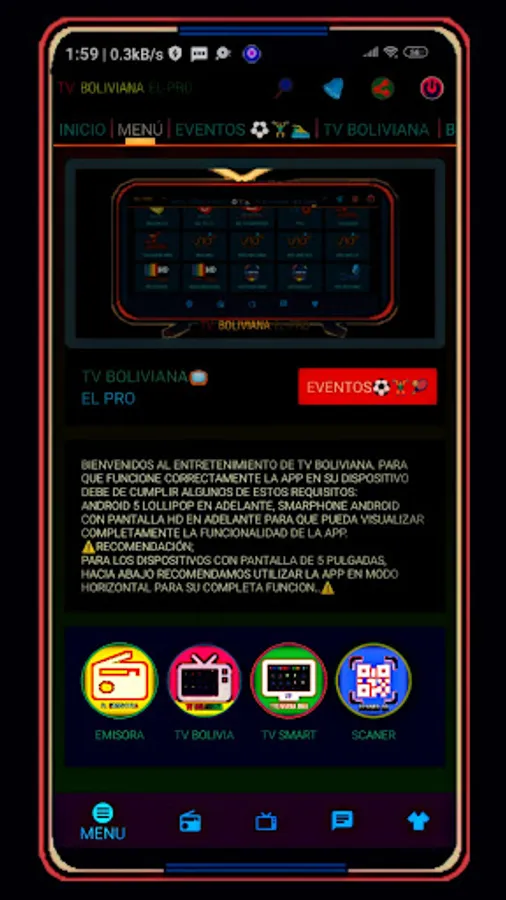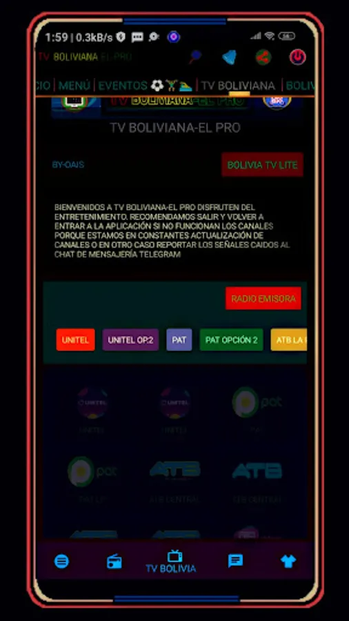 Tv Boliviana- el pro is a free app where you can enjoy live television channels from Bolivia on your device. You will also be able to watch exclusive Bolivian movies and as well as listen to Bolivian radio on its digital signal via the Internet.
