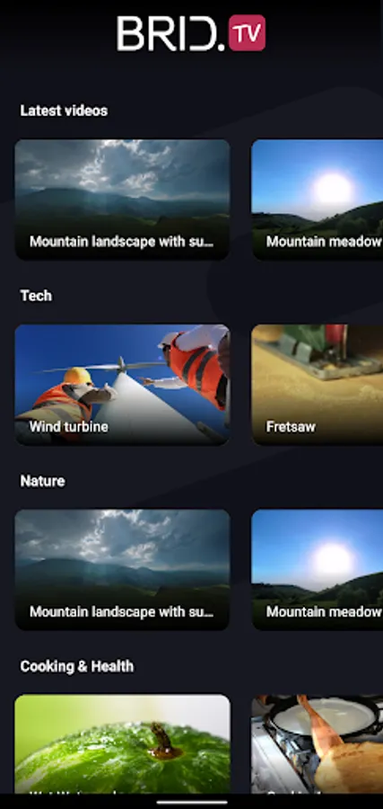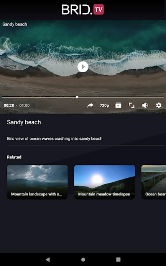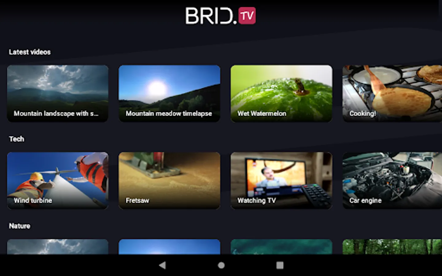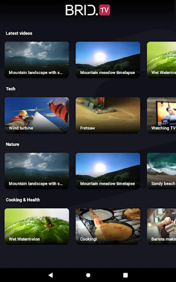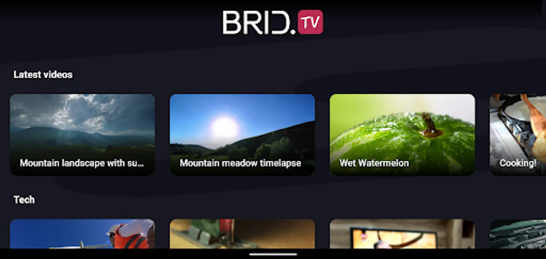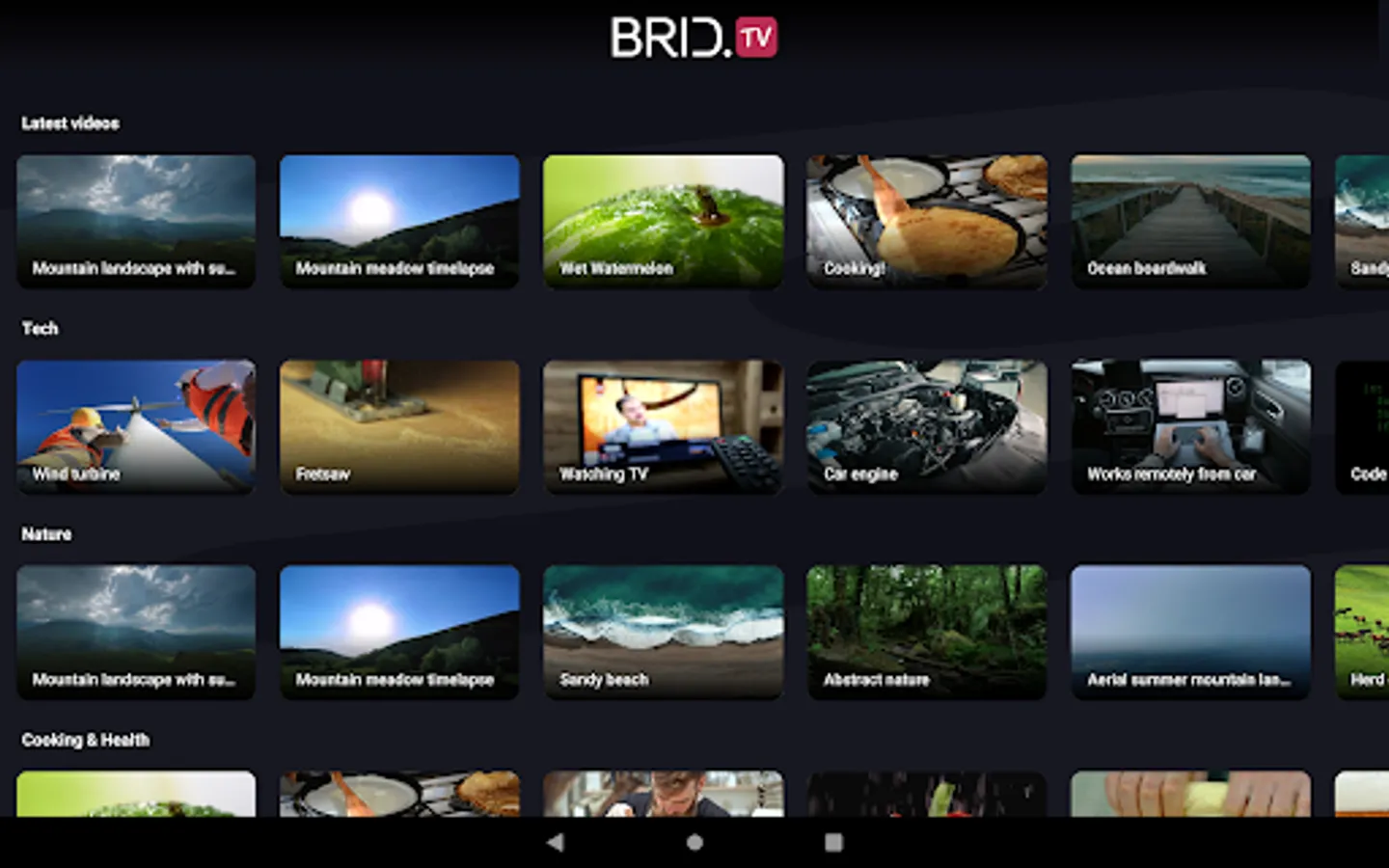 BridTV is a demo app showing the capabilities of Brid.tv's mobile app builder. The app showcases how a publisher can integrate their own video content using Brid.tv's app builder into their own custom Android mobile app.