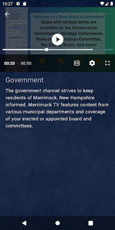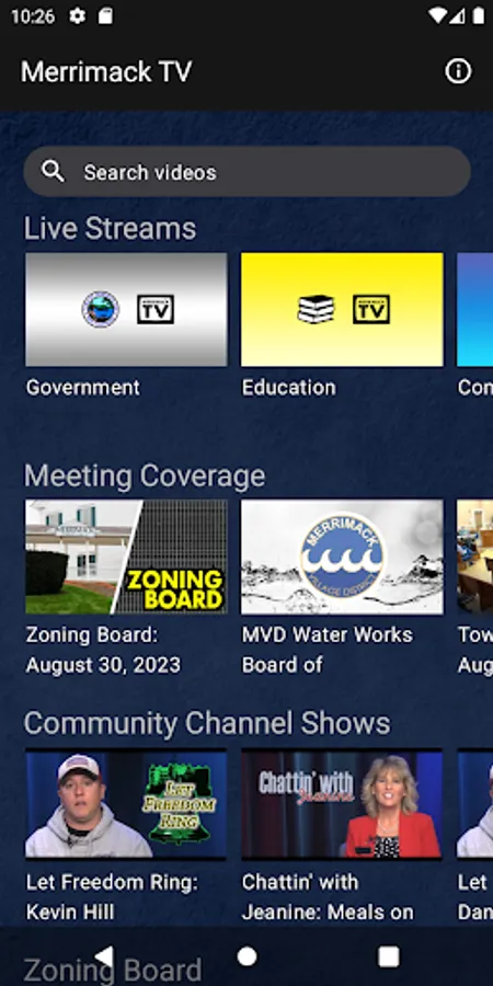 The Merrimack TV app features locally produced content from New Hampshire and gives you the ability to watch live programming from anywhere. Users can stay informed with live and recorded gavel-to-gavel coverage of municipal and school meetings. Get to know the community through original shows and events. Families and friends from throughout the country can enjoy Merrimack High School varsity games, student concerts, and more using the Merrimack TV app.
