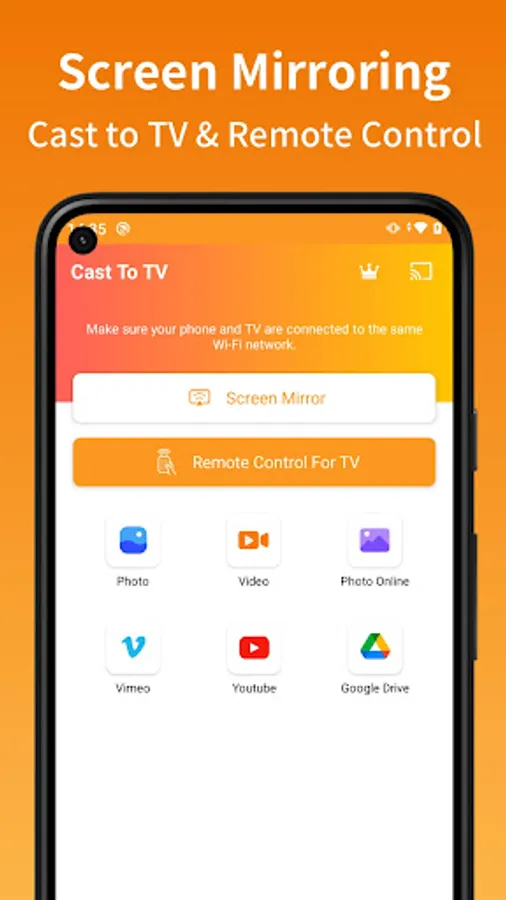1. Make sure your phone and the TV are turned on and connected to the same WIFI network.