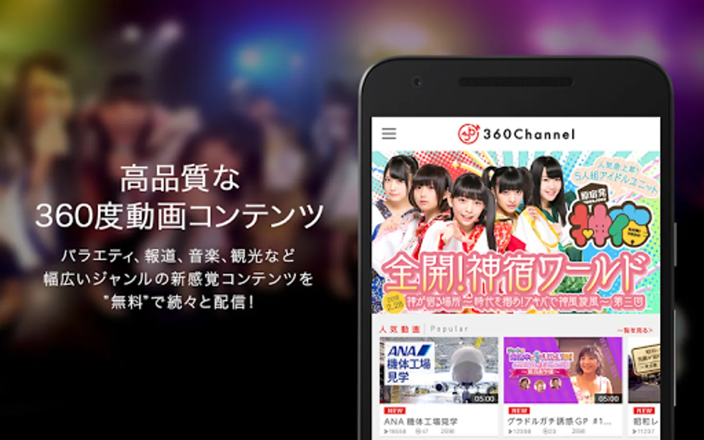 バラエティ、ドキュメンタリー、音楽、観光など様々なジャンルで高品質な360度動画を無料で配信いたします。