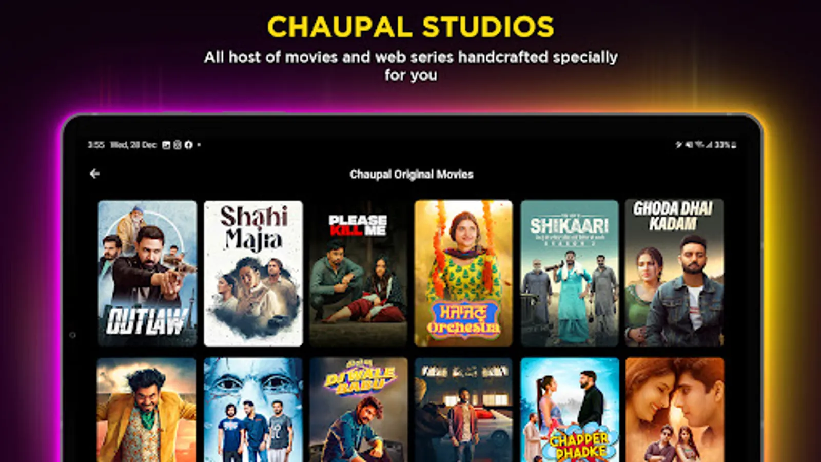CHAUPAL is a premium OTT app where you find superhit, original and exclusive movies, series & short films - all ad-free and with world-class customer service.