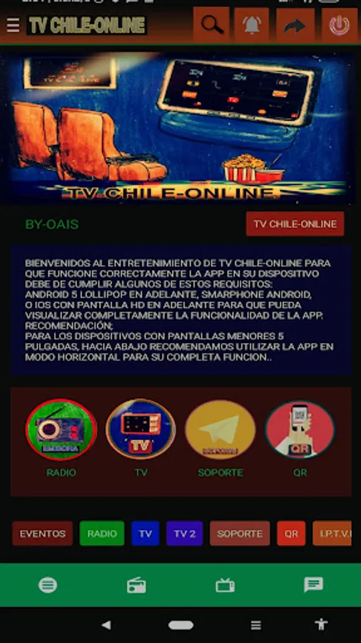 Welcome to Tv Chile-Live enjoy training, your favorite channels on your Android smartphone, Tablet and TV Box. We have varieties of open signal Chilean channels. You can also tune in to the radio station, listen to your favorites.