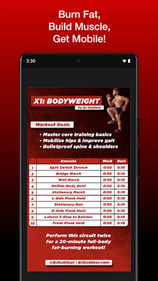BJ Gaddour is the former fitness director for the Men's Health brand and the author of Your Body is Your Barbell, the definitive guide to bodyweight training. THE DAILY BJ or TDBJ app is BJ Gaddour's exclusive home workout app. The featured program is EXPRESS: fast, fun & effective 20-minute follow-along workouts using minimal equipment for busy parents & professionals. These are the full-body metabolic conditioning workouts that made BJ world famous.