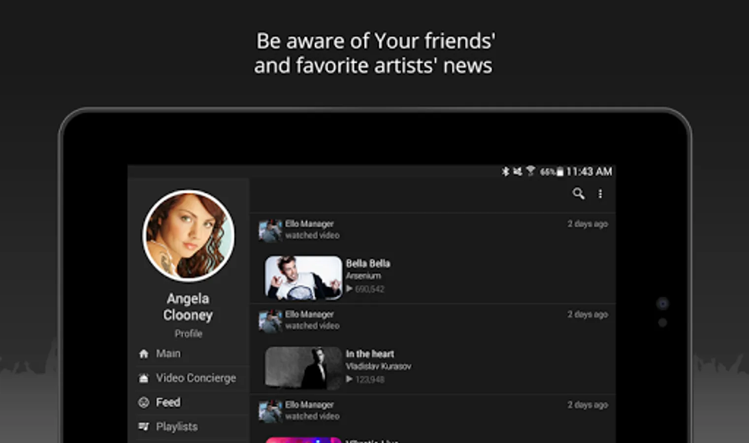 Discover exciting new music videos from ELLO. Start watching your music videos of your favorite artists in HD quality.
