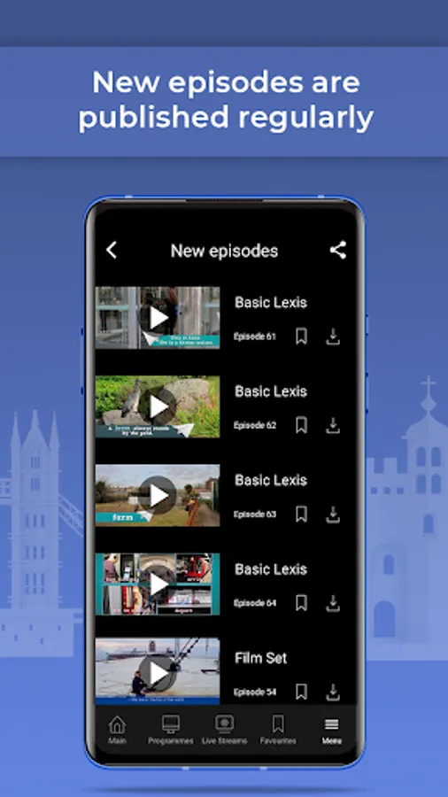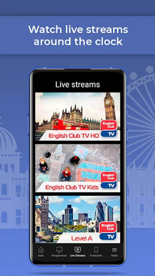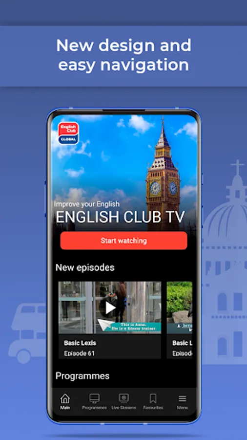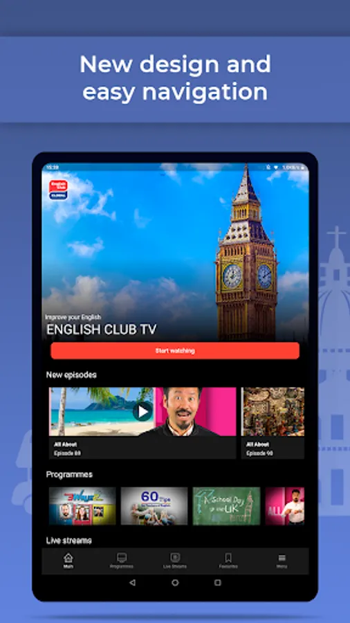 The app allows you to watch the online stream 24/7. Use the special Schedule section to plan how and when you want to learn English with ECTV. Have you missed your favorite episode? It’s no problem because you can always find it in the Programmes section.