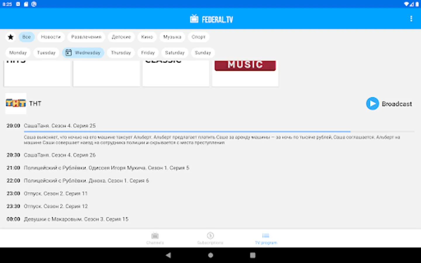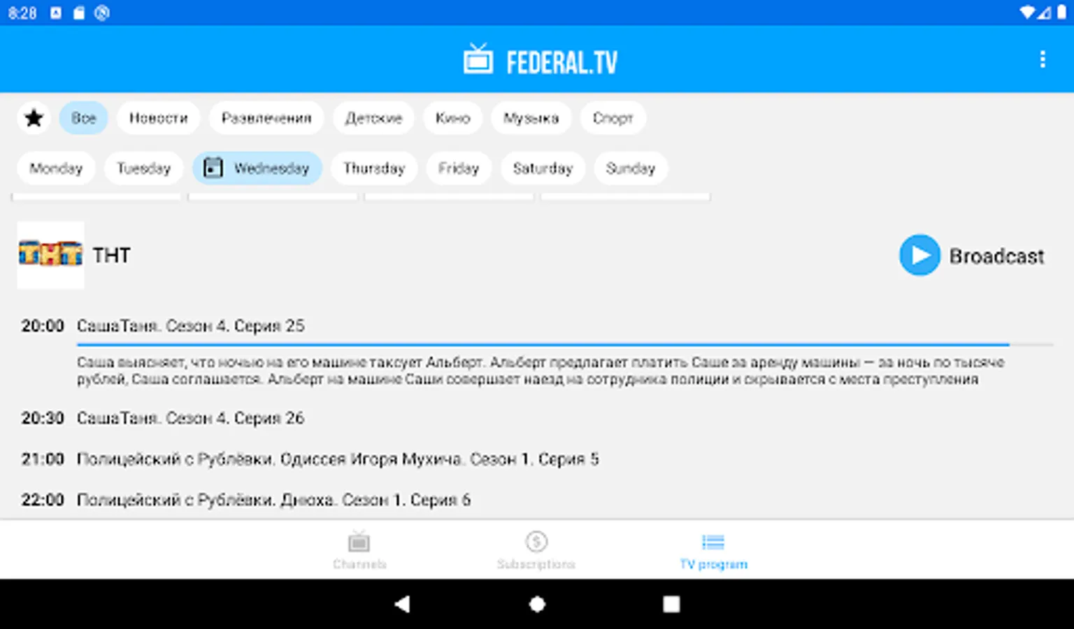 Convenient TV program for the week. Stable TV broadcasts 24/7.