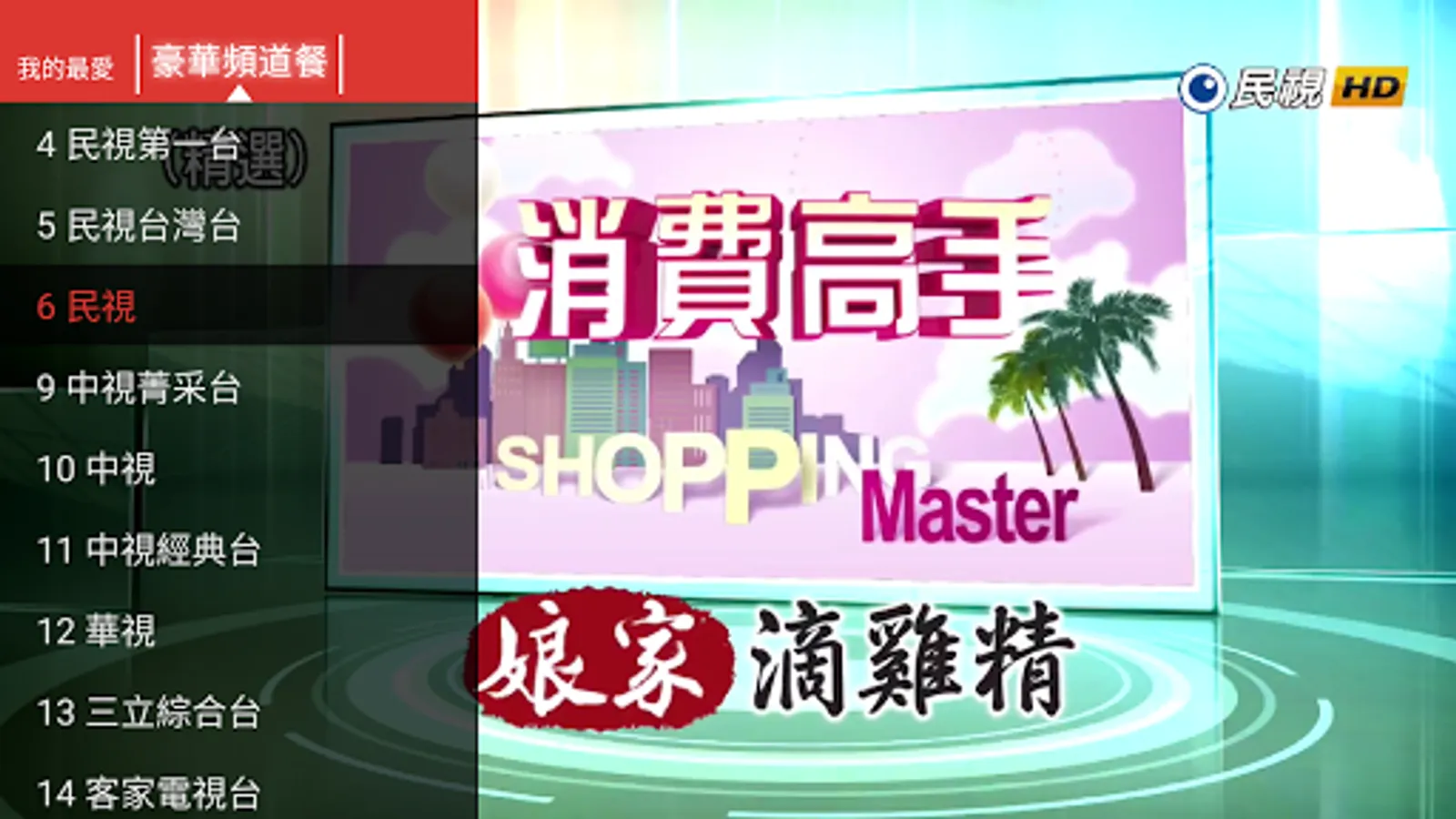 "Free Channel 50" China Television, CTV, FTV, FTV First Channel, FTV Taiwan, Zhongtian News Channel, CTV News, TVBS News, CTV News, FTV News Channel, Sanli Financial News, Dongsen News Channel, Daai TV, Sanli Comprehensive Channel, Hakka TV Station, NTDTV Asia Pacific Channel, ARIRANG Arirang Channel, Aboriginal TV Station, LiveABC Interactive English Channel, ELTV Life English Channel, MOMO Parent-child Channel, Dongsen Shopping 1, Mirror TV News Taiwan, Dongsen Financial News Channel, SBN Global Finance Channel, Dongsen Shopping Channel 2, FTV Variety Channel, Zhu Ge Liang Karaoke Show, Zhongtian National Big Party, Zhilin Sports Channel, Fashion Sports X, FTV Travel Channel, Rolling Force rollor, Asia Travel Channel, Alda Life Travel Channel, LUXE TV Channel, TV5MONDE STYLE HD Lifestyle, Zhongtian Food Travel, PTV Drama, PTV Film and Drama Channel, Jinguang Puppet Show, My Cinema Europe HD My European Movie , Good News 2, Human TV, Al Jazeera International News, VOA, DW, Congress Channel 1, Congress Channel 2, Classic Movies, Classic Cartoons, Children's Cartoons, Selected Cartoons, Chinese Drama Taiwan, Chinese Variety Show, dramas and movies for free.