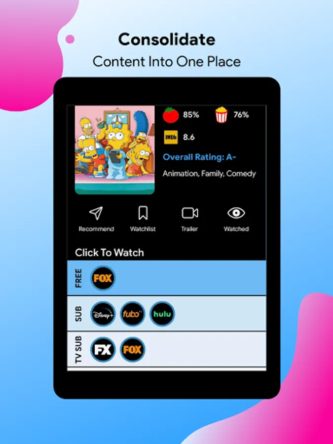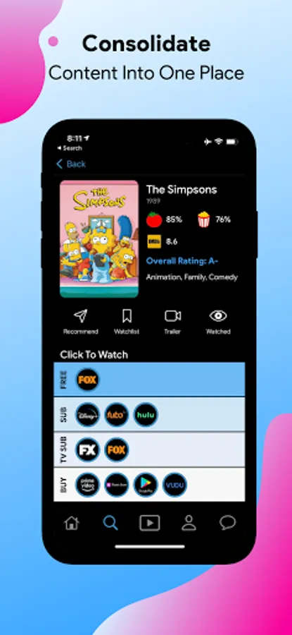 Discover shows and movies across all of the streaming platforms, add them to your watchlist and recommend them to your friends.