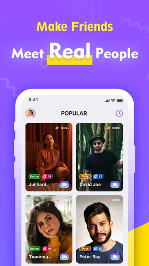 Authentic Socializing: Afraid of fake users? Fear no more! Authentic verification can make sure you meet people with 100% real profile during the 1 on 1 video chats.