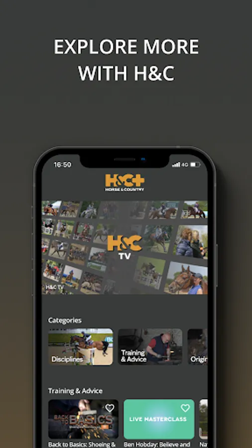 The H&C app lets you watch Horse & Country TV on your phone or tablet device. Watch selected free content, or log in using your H&C TV subscription to unlock our entire library.