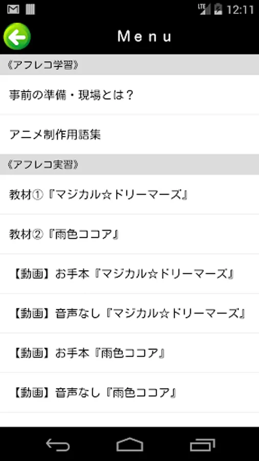 アフレコ実習用の教材は、大人気電子マンガ『マジカルドリーマーズ』と『雨色ココア』を使用してます。