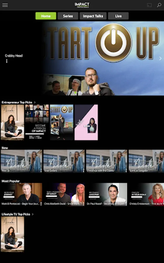 Impact offers short, powerful talks from entrepreneurs and motivational leaders, exclusive access to live speaker events, uplifting movies and series, impactful documentaries, premiere original programming, and interactive technology that creates a community for viewers.