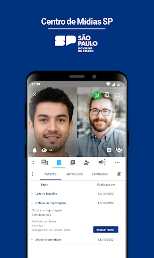 The application allows you to follow the transmissions of both live classes and recorded classes from the public network in the State of São Paulo, encouraging interactive participation between students and teachers through chat, educational quizzes and video collaboration.