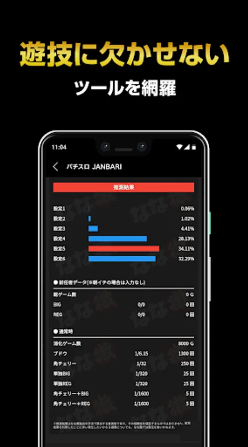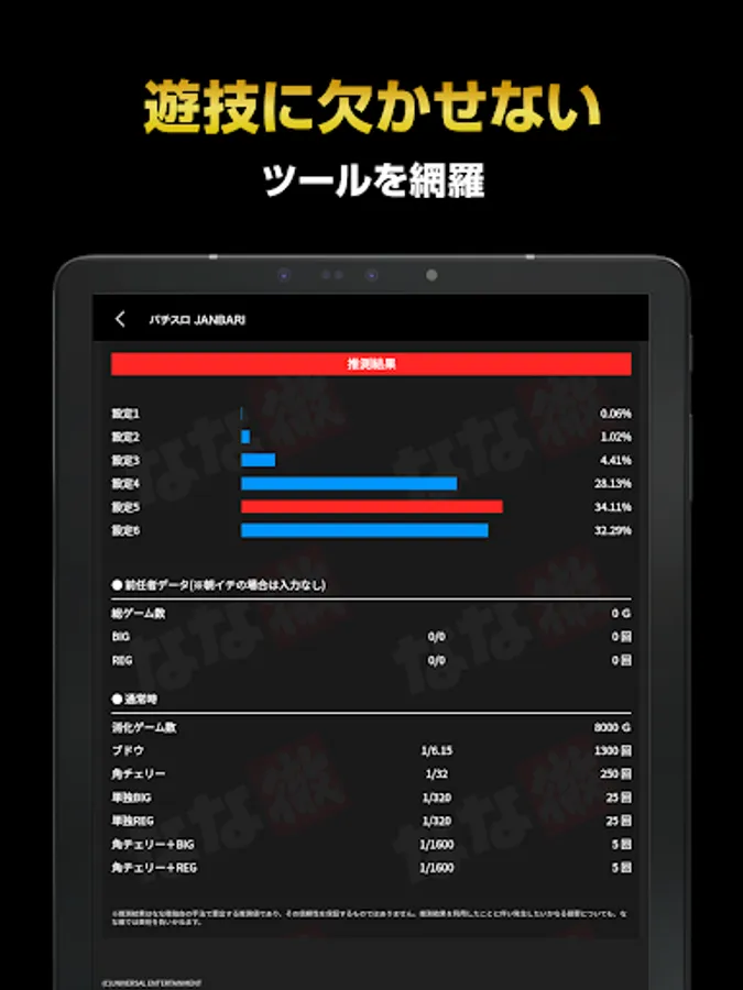 From the app, you can check the information that is indispensable for capturing the model, such as the analytical information for each model and the theoretical value of the setting discrimination element posted in "Nana Toru".