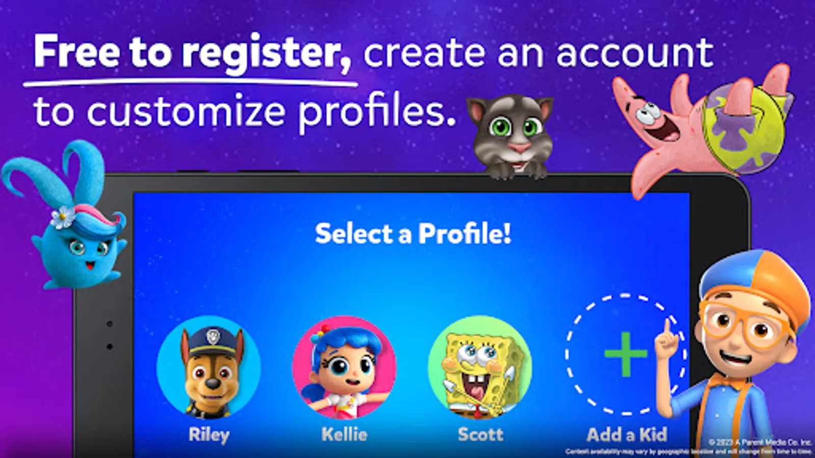 - Create your own profile, customizable by color, avatar, title selection, and age group set parental control screen time limits