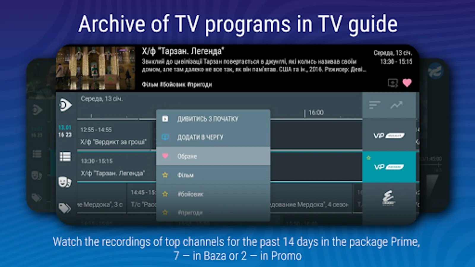the ability to view recordings of programs for the last 14 (Prime TV package) or 7 (Baza TV package) days.