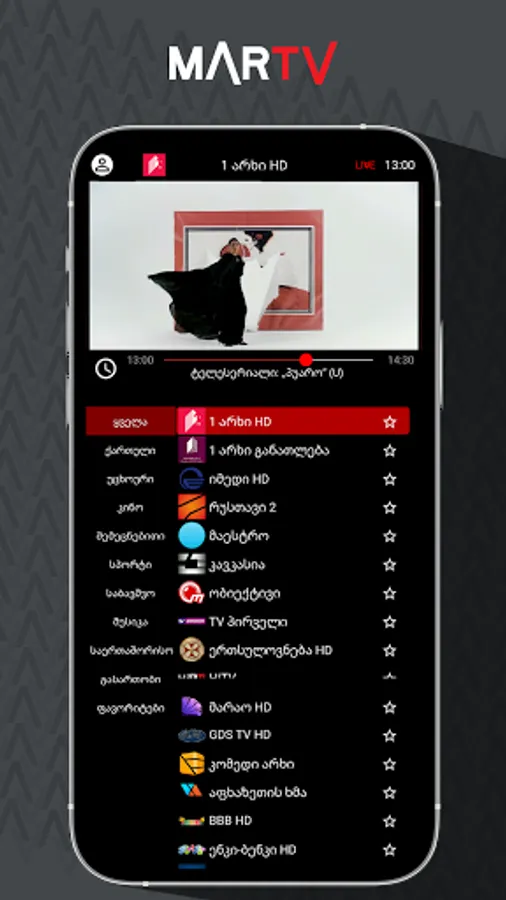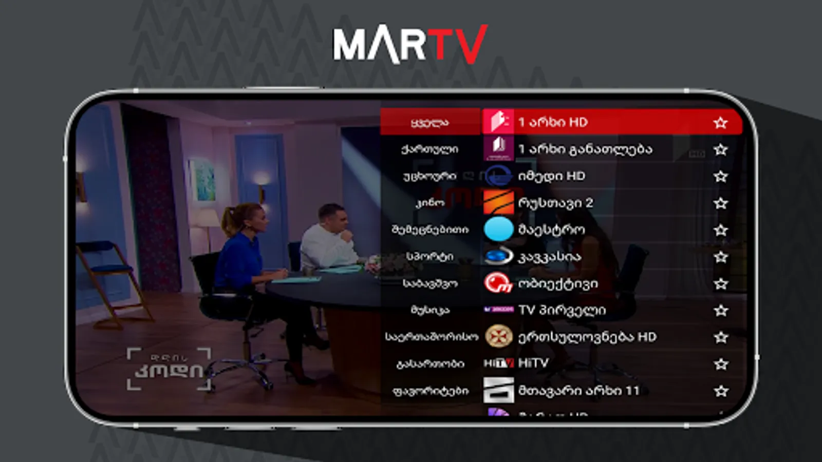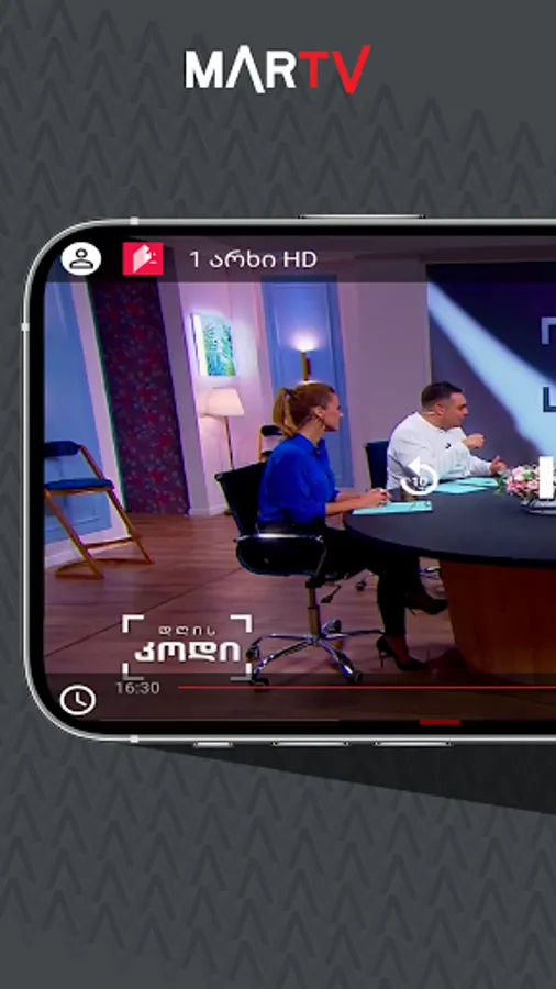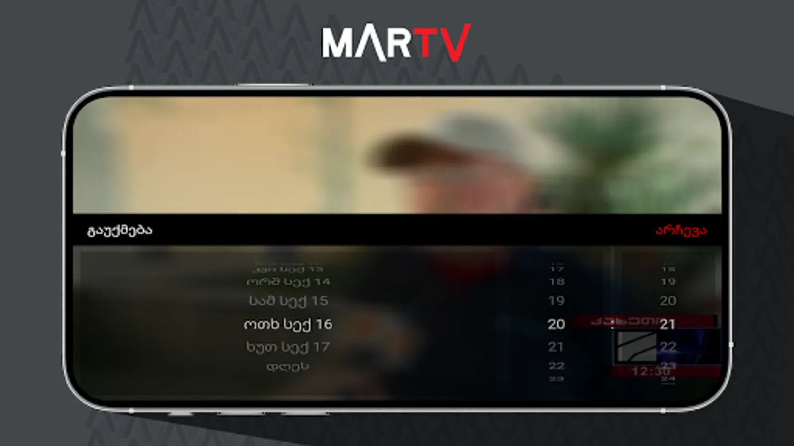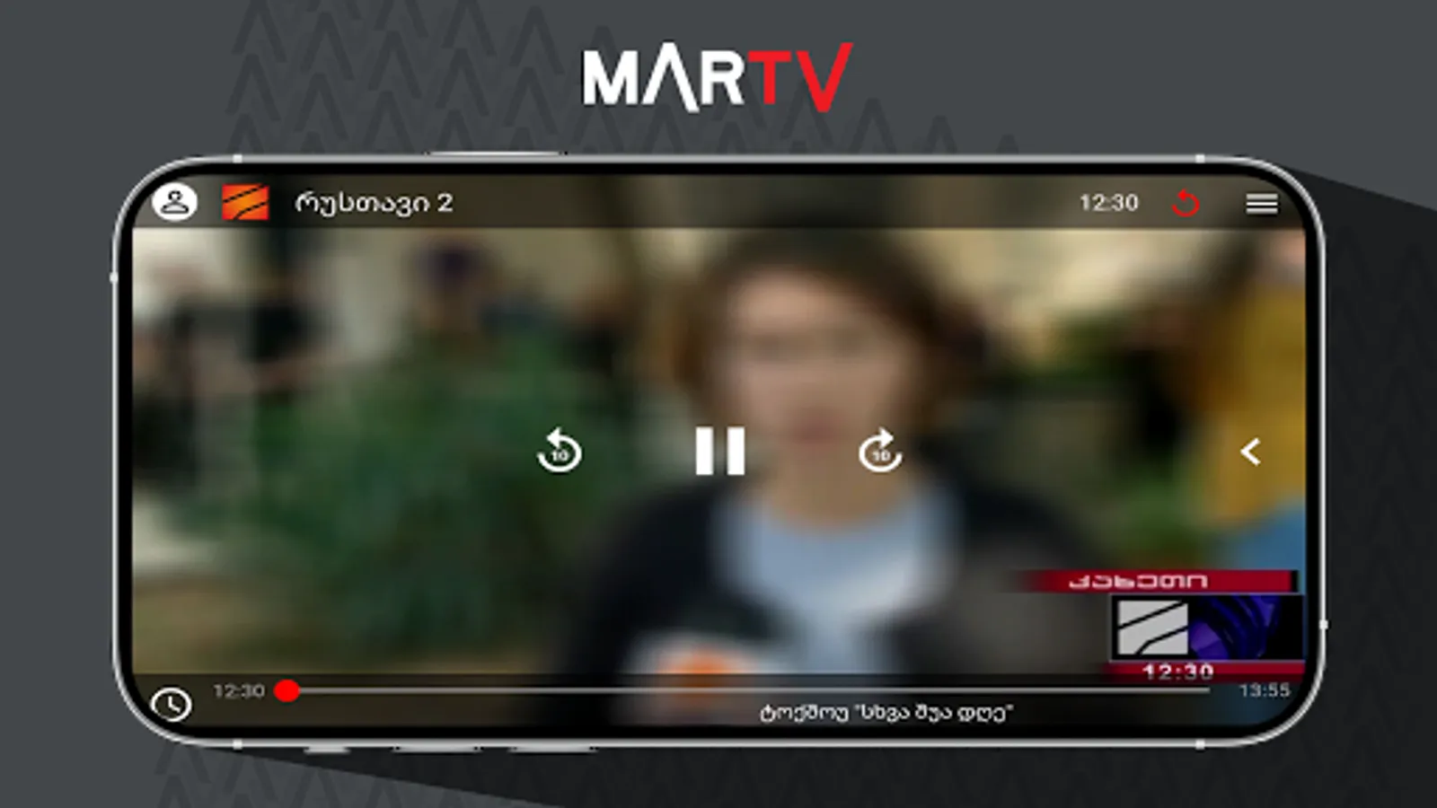 With MarTV App you can watch 50+ Georgian channels with rewind functionality.