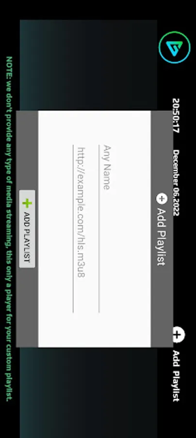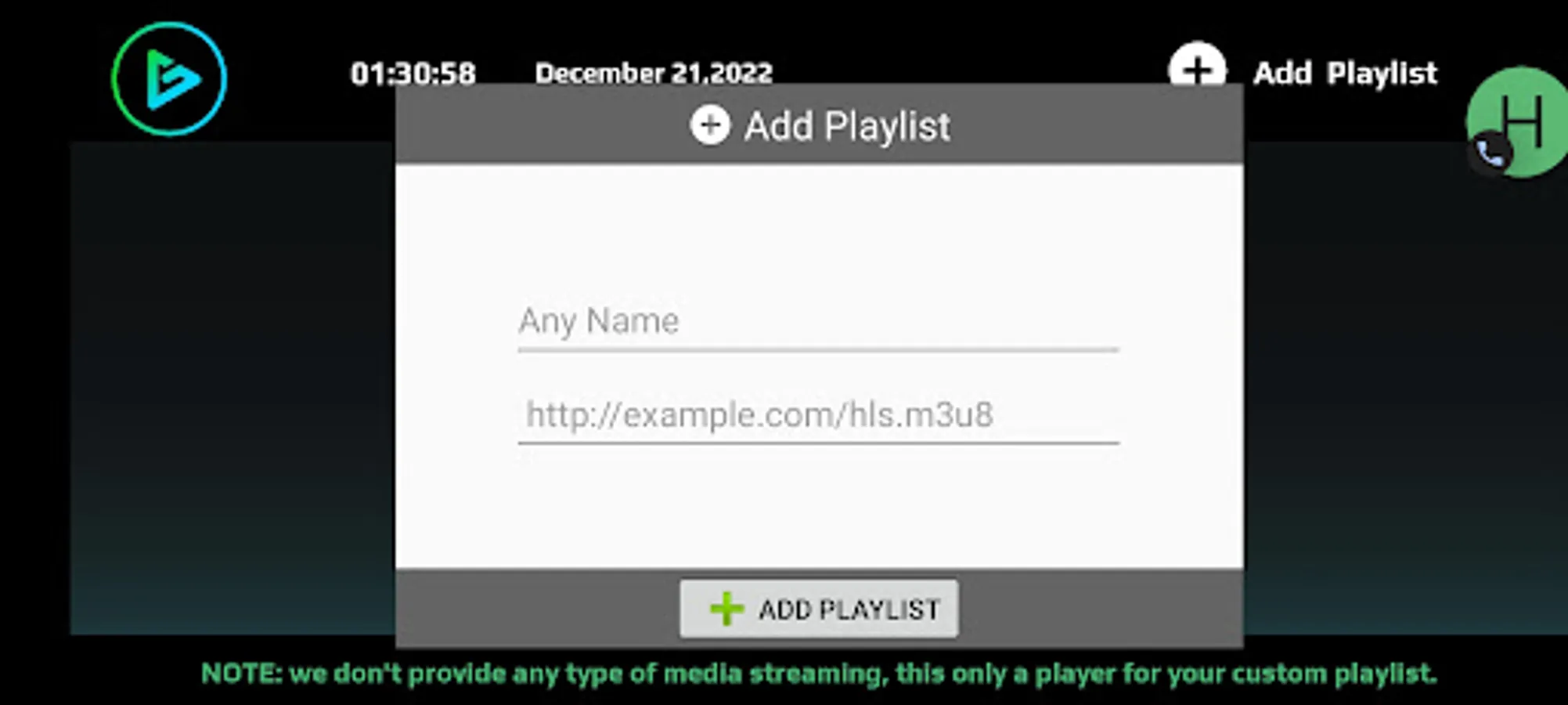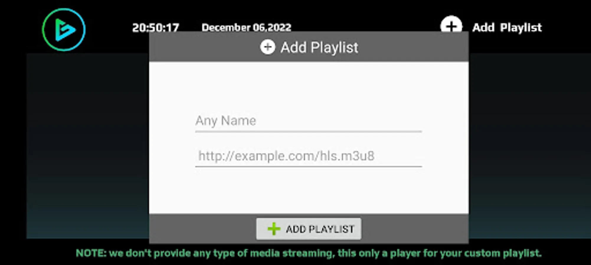 GTV Player is a free multimedia player where the user can play any type of streams using m3u files or direct http link , the player support the following formats support MKV, MP4, AVI, MOV, Ogg, FLAC, TS, M2TS, Wv and AAC. GTV player is just multimedia player and it not contain any copyrighted content or streams