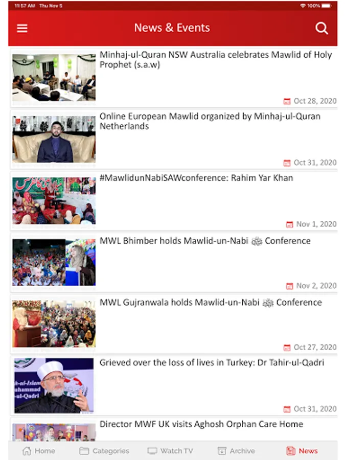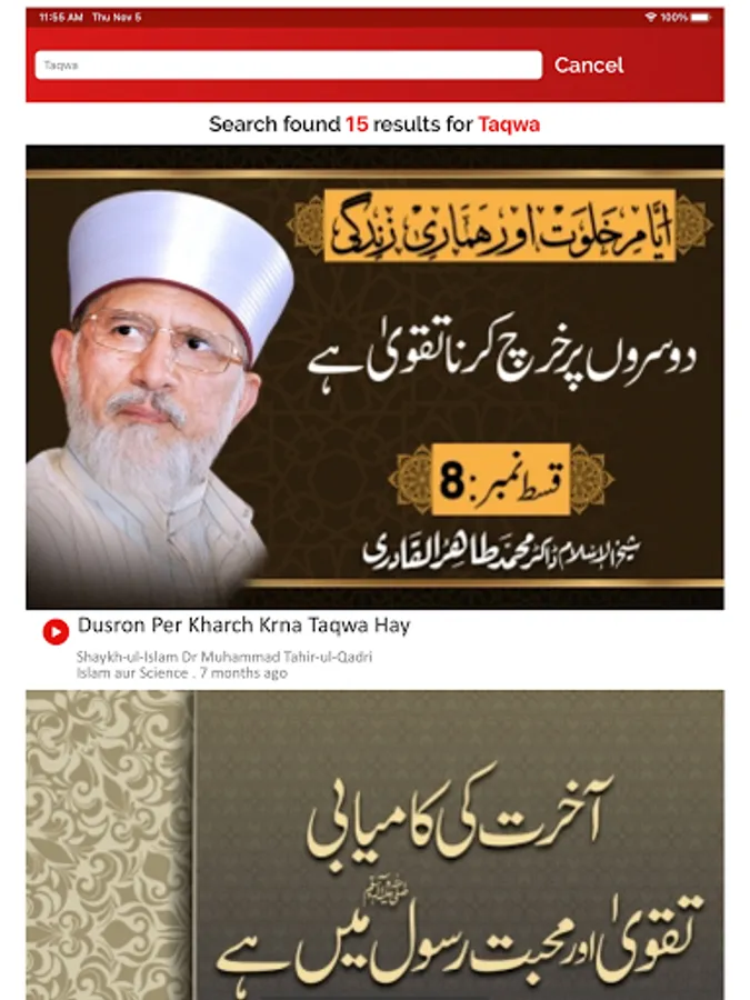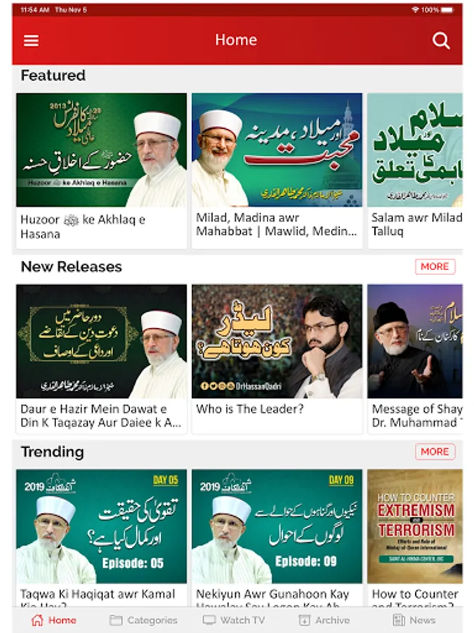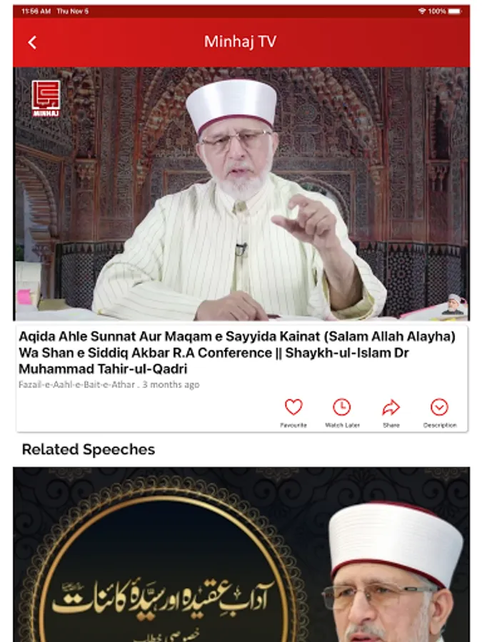 Minhaj TV mobile app launching ceremony was held on June 9, 2018 at the Itikaf City. Shaykh-ul-Islam Dr Muhammad Tahir-ul-Qadri launched the app by formally opening it on the mobile. Thousands of video speeches are available on this mobile app. Some important features of the app are as under: