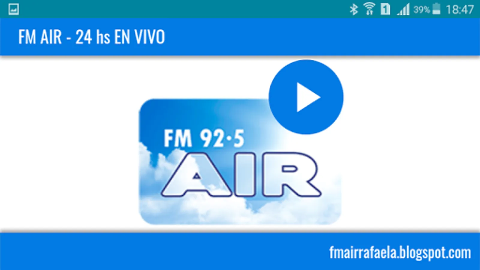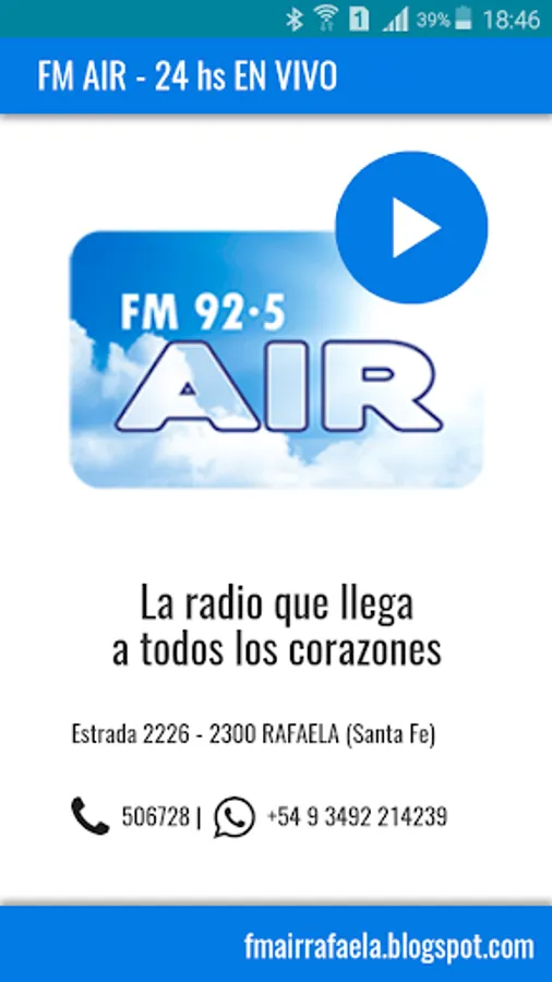 Application to listen to the live streaming signal FM 92.5 mHz Air, Rafaela, ARGENTINA.