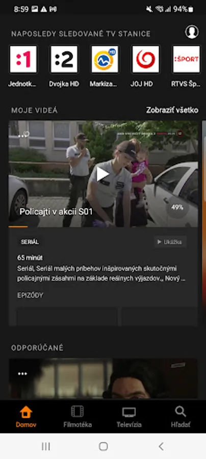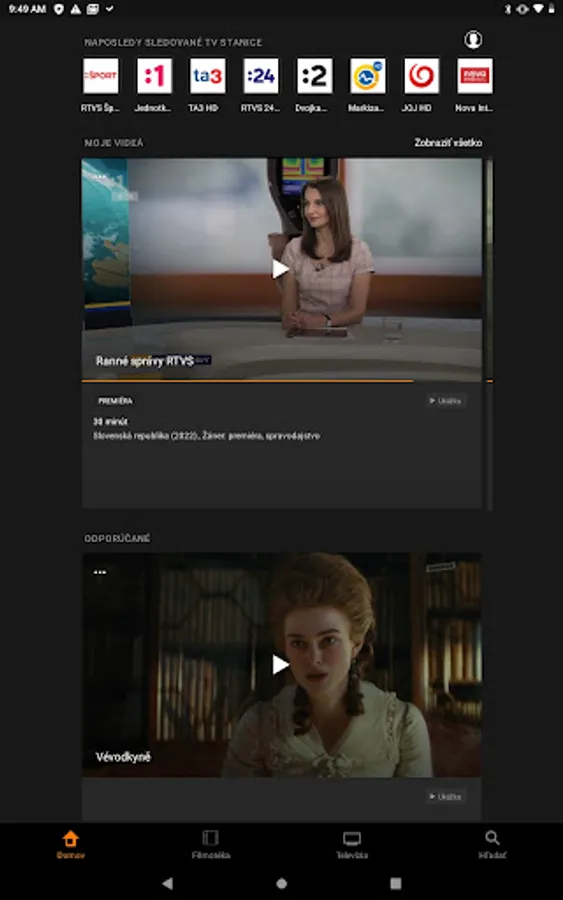 - personalizovanú sekciu Domov, ktorá obsahuje napríklad Moje videá či naposledy sledované TV stanice.