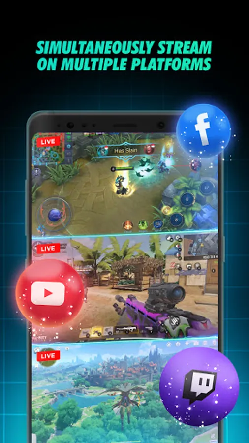 Experience an ultimate social gaming experience all on your mobile. Easily live stream any mobile game installed from your phone with just a 1-TAP. Not only that, but you can also stream on your PC and share it to multiple platforms! Anytime. Anywhere.