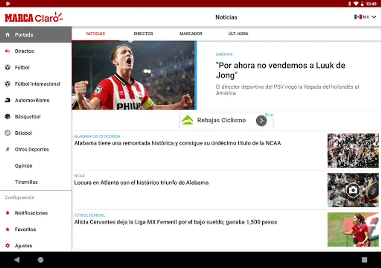 - News: Get the latest information and details of all sports and national and international competitions quickly and directly. Cover consultation with the most important news and browse through the different sections.