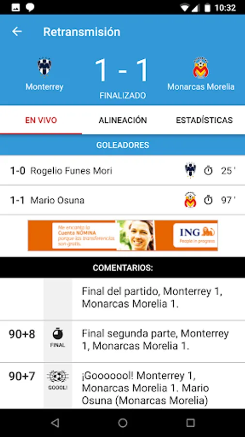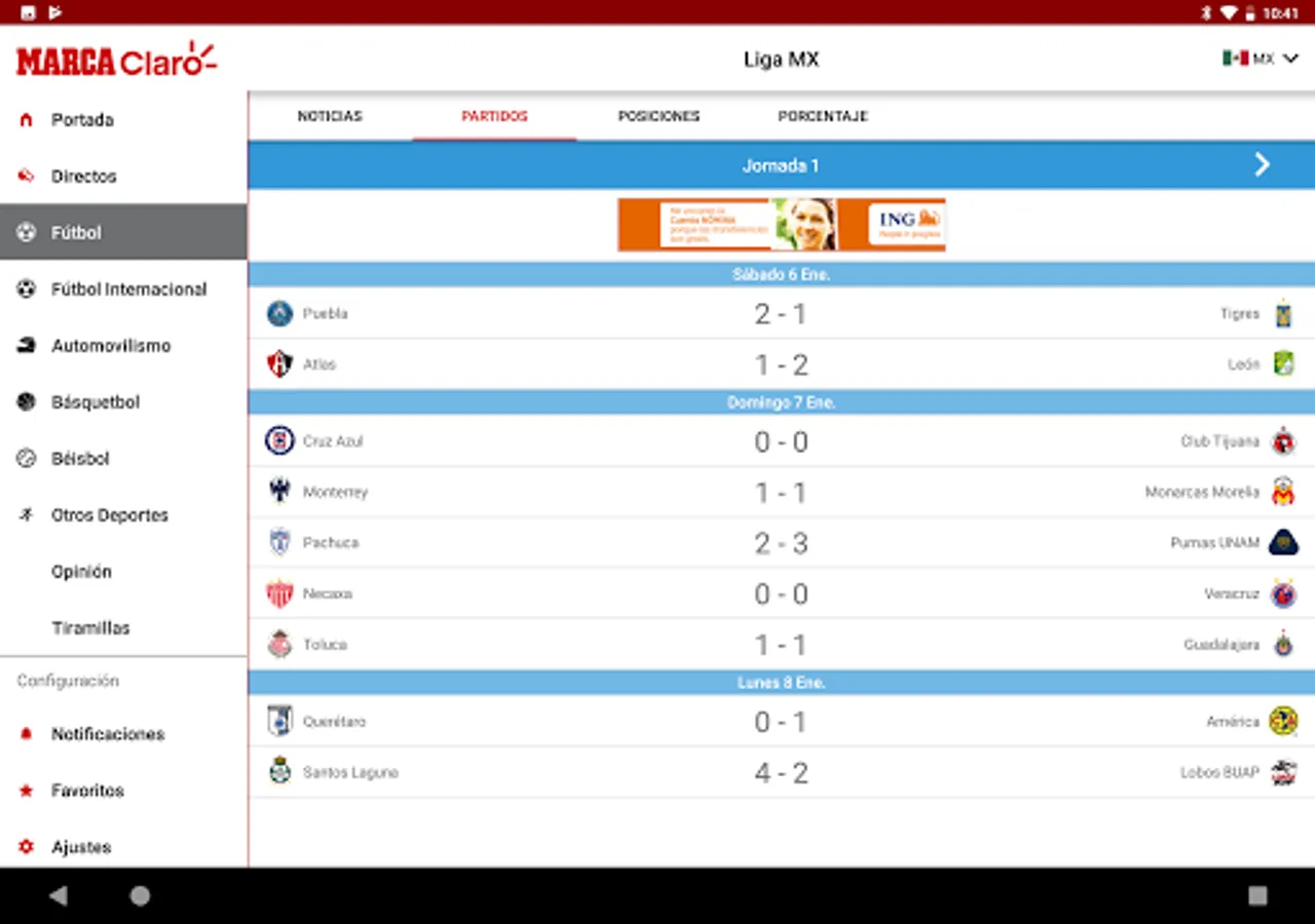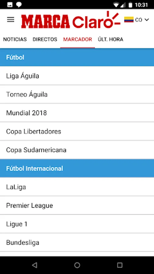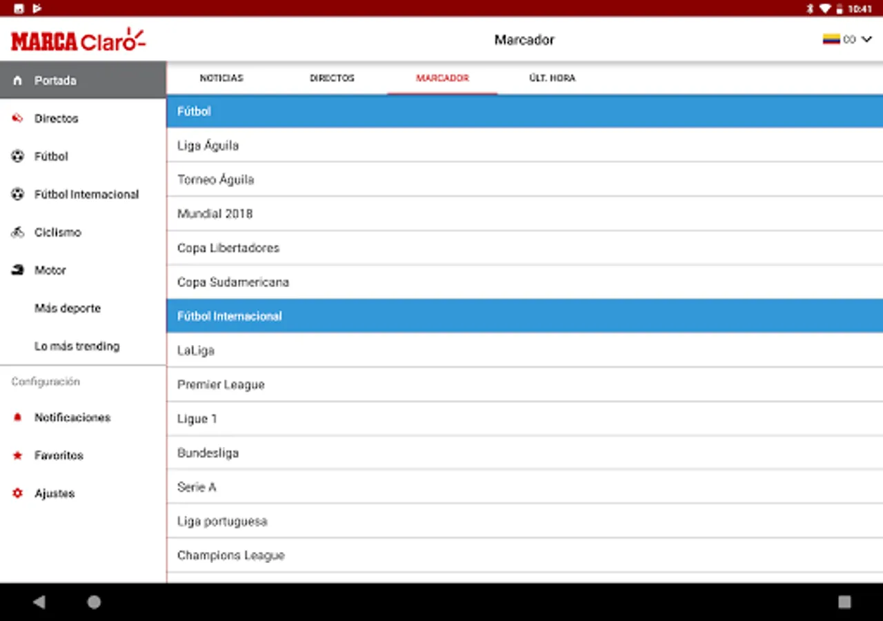 - Score: Consultation with the app MARK course the most complete results and classifications of national and international competitions. Enjoy every day with all the excitement and detail of the MX, Liga de Ascenso, MX Cup Liga Aguila League Tournament Eagle, CONCACAF Champions League, Copa Libertadores, Copa Sudamericana, World Russia 2018, Champions League, Europa League and Europe's top leagues. Of course, you can also access all the information F1, NBA, basketball, baseball, cycling, wrestling, UFC and football, the entire engine, boxing, MMA, tennis, golf and relevant international competitions. With the most complete calendar of the season prior, live commentary, classifications and chronic concluded parties and races.