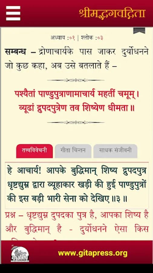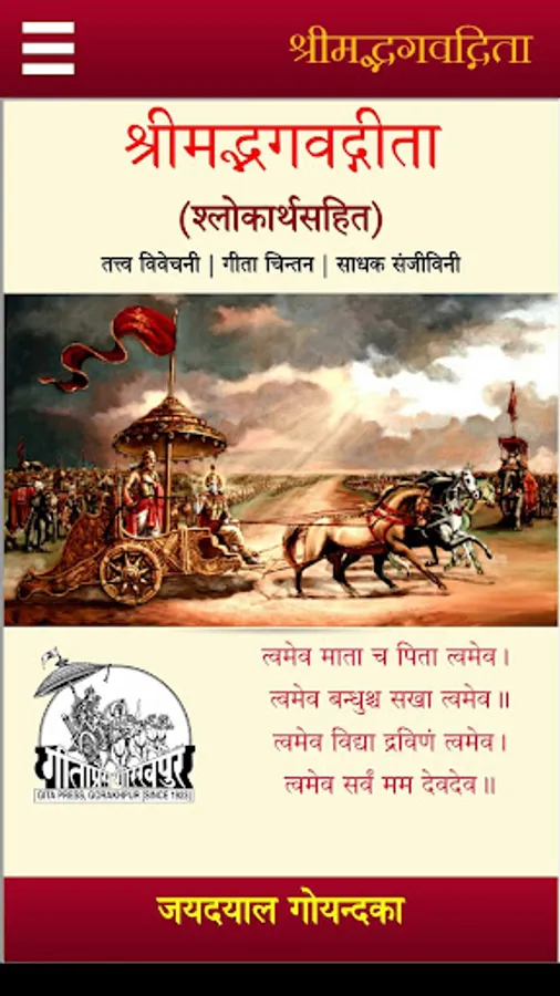 Srimad Bhagavadgita - Tattva Vivechani - Hindi, is a detailed explanation of the BagavadGita from the true Karma Yogi, Sri Jaydayal Ji Goyandka.